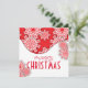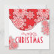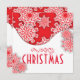 Belo design de cartão de Natal personalizado com flocos de neve estilizados, vermelhos e brancos, em dois pedaços de papel. O texto é totalmente personalizável.