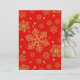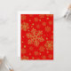 Design de Natal com flocos de neve ouros e estrelas em fundo vermelho