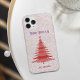 Este elegante, único, moderno, na moda, desenhado à mão, design apresenta uma árvore de Natal com detalhes intrincados em cores vermelhas sobre fundo cor-de-rosa pincel com ornamentos. O design também apresenta um nome personalizado na topografia do na moda. Este item é perfeito para a época festiva e pode ser um excelente presente para seus amigos e família.