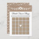 Tipografia e flores brancas simples papel kraft floral papel rústico de chá de panela de casamento bingo. Mostra uma pequena flor com folhas em branco e um coração em papel rústico kraft. O dorso inclui um padrão com flores pequenas e folhas em branco.