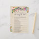 Teste quem conhece melhor a mamãe com nossa flor colorida, "Como você sabe bem a Mamãe para ser", com um fundo vintage. Os convidados preencherão as vazios para responder algumas perguntas básicas sobre a nova mãe. Quem ganha o mais correto! Certifique-se de verificar nossa grande seleção de coordenadores de itens de chá de fraldas na coleção de chás de fraldas Florais Coloridos!