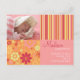 Anúncio de nascimento de fotos cor-de-rosa e laranja do Flower Fizz. Personalize este modelo de cartão-postal moderno e na moda com a foto da sua menina e os detalhes para um anúncio de nascimento único.