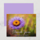 Este design frontal apresenta uma flor de Erigeron roxa com um pequeno inseto e a parte traseira tem cor correspondente ao texto Agradecimento da frente. Personalize os campos de texto, remova o texto ou edite com a ferramenta de design para selecionar um estilo de fonte, tamanho e cor que você gosta. A parte traseira em branco permite sua mensagem especial de agradecimento manuscrita. Fotografia ©Patricia AZ Phillips