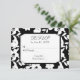 Padrão floral preto e branco com pérolas brancas e moldura de canto cortado para RSVP de casamento. Todo o texto é editável.
