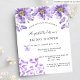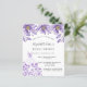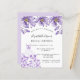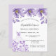 Na frente: Um fundo branco com vestido violeta, violeta lilás e florais. O nome é escrito com um moderno estilo escrito à mão. Personalize e adicione um nome e detalhes da parte.