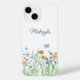 Esta capas de iphone floral é decorada com delicadas flores de aquarela, folhagem e uma borboleta de cor pastel. Facilmente personalizável com seu nome. Original Watercolor © Michele Davies.