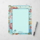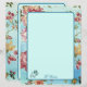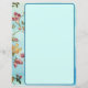 Rosas rosa no fundo azul. Uma bela apresentação de belos tons cor-de-rosa de rosas e verde num fundo azul-ombre personalizado. O verso da página tem o mesmo padrão com um layout ligeiramente diferente. Um design verdadeiramente personalizado.