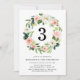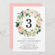 Convite de aniversário floral elegante com a idade da pessoa cercada por uma coroa de flores escamosas e folhas verdes esmagadas. Personalize os convites de aniversário botânicos adicionando o nome da aniversariante e os detalhes da festa. O lado inverso dos convites apresenta um fundo rosa-pincel sólido.