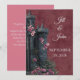 Esta ilustração de Princesa do Castelo Gótico da Dark Academia é uma peça central impressionante para um casamento de conto de fadas sombrio. Contra um fundo marrom profundo e texturizado que imita a aparência de veludo envelhecido, a arquitetura de pedra cinza-carvão imponente parece ao mesmo tempo antiga e régia. Descendo em cascata pelas torres e florescendo na base da fortaleza estão cachos de Rosas Inglesas rosa empoeiradas e delicadas Cerejeiras em flor, proporcionando um contraste suave e romântico com os aguçados pináculos góticos. Com o castelo posicionado elegantemente à esquerda, o design deixa um espaço amplo e sombrio à direita, perfeitamente adequado para caligrafia em ouro ou prata.