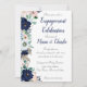 Um convite de festa de noivado elegante com design elegante e floral. Estes convites para renovação do casamento apresentam lindas flores azuis e cor-de-rosa e marinho, juntamente com um pouco de verde. A fonte com script contém todos os detalhes de celebração do noivado.