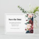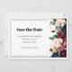 Este cartão Save the Date apresenta uma elegante tipografia serif e florais em negrito em cores profundas. Este cartão sofisticado fornece uma estética química que complementa perfeitamente o seu pacote de convites para o casamento, garantindo que os seus convidados marquem os seus calendários com estilo.