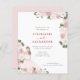 Florais Rosa Pintado, Bride Motif. Lindos e poeirentos florais cor-de-rosa são os cantos superior direito e inferior esquerdo e um motif simplista para o canto inferior esquerdo. A cor e o tipo da fonte podem ser alterados através do menu de edição. Você também pode alterar as cores do texto e do plano de fundo em ambos os lados, se desejar. Um valor para o alternativo menor de 4,5 x 5,6 polegadas é usado como padrão para a opção de semigloscópio, que é recomendada para convites e é de espessura semelhante a um cartão postal. A opção satin é muito mais fina.