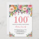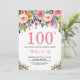 100.º Convite de Aniversário para Mulheres. Flor Floral de Aquarela. Rosa, Amarelo, Laranja, Flor Roxo. Aniversário Adulto. 30 40th 50th 60th 80 de 70 de 100th 13 de 16th 18th 20 21rua de qualquer idade. Para mais personalização, clique no botão "Personalizar" e use nossa ferramenta de design para modificar este modelo.