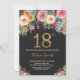18º Aniversário do Floral. Flor Floral de Aquarela. Glitter preto e Dourado. Rosa, Amarelo, Laranja, Flor Roxo. Aniversário Adulto. Para mais personalização, clique no botão "Personalizar" e use nossa ferramenta de design para modificar este modelo.