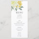 Menu de casamento personalizável com flores amarelas de verão primavera num fundo branco limpo.