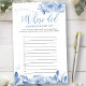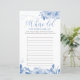 Cartão de jogo de chá de panela, personalizado com os nomes da noiva e do noivo. Design floral azul Dusty com flores de aquarela e folhagem e caligrafia elegante. Projetado para o jogo de fotos de casamento ou chá de panela "onde eles estavam" ou "aonde eles foram" com linhas numeradas para seus convidados somarem até 12 respostas.