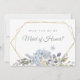 Você Será Meu Cartão De Madrinha de casamento. Cor d'água romântica florais azuis empoeirados e folhas em estrutura geométrica dourada.