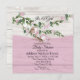 Esta design tem um galho de minúsculos florescimentos de hidrangea com verde fluindo pelo topo da design. No topo diz "É uma garota" e sob os galhos está um pequeno poço de ovo em um ninho com um pássaro mama observando. As flores e o pássaro estão em um rosa macio. Há uma faixa embaixo do design floral com espaço para o nome da Mãe e os detalhes do chá. Todo o design está se posicionando em uma madeira de celeiro lavada em branco.