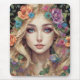 Radiant beauty for your desk. This mouse pad features a stunning portrait of a blonde, blue-eyed girl adorned with delicate florals in her hair and surroundings. A touch of elegant, feminine artistry at your fingertips.