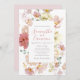 Convite de casamento maravilhosamente desenhado com aquarelas florais em rosa-pincelado e detalhes da folhagem. Tipografia elegante com rosa empoeirada e cinza de luz. Fácil de personalizar seus detalhes.