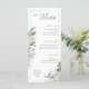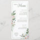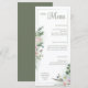 Cartão de noiva floral moderno e elegante. O design apresenta elementos florais de cor d'água na parte frontal e elementos verdes sage na parte de trás. Personalize-o facilmente com os detalhes do seu casamento.