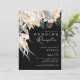 Nós projetamos este convite de recepção de casamento Floral Branco | Preto para completar sua recepção rústica tropical escura. Com sua folhagem boêmia em aquarela até suas flores modernas boho de inverno, incluindo protea, dália e lótus seco, o design certamente destacará seu tema minimalista e sombrio de preto e verde. Altere o texto e adicione uma foto para torná-lo seu. Além disso, certifique-se de examinar o restante da coleção para encontrar itens coordenados que unirão todo o seu casamento! https://www.zazzle.com/collections/white_floral_collection-119896729923706651