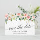 Script de caligrafia moderna. Casamento Verde Floral Elegante Cor de Água Rosa Espelhada Cor de Linho Salva O Cartão de Data inclui rosas brancas cor-de-rosa e outro belo verde.