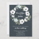 Convites de casamento flexíveis com coroa branca e texto personalizável, quando a noiva e o noivo estão hospedados, impressos em fundo escuro