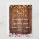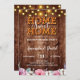 Fundo Russo de Madeira com Cartão de Convite para o Partido do Aquecimento Doméstico com Design e Luzes de Cordas Quentes