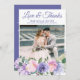 Cartões de agradecimentos de fotos casadas com lavanda rosado-rosado-rosado-roxa-púrpura design floral, flores bonito com roteiro elegante. Personalize nomes, datas e informações.