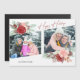 Saudações familiares legal, modernas e completamente personalizáveis com um modelo único de duas fotos na diagonal com dois clusters de gráficos florais elegantes de aquarela, gráfico personalizado "Felizes Feriados" em uma fonte de assinatura vermelha e campo de texto editável.