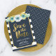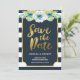 Floral Dourado Azul e Falso Salvar a Data Convite
