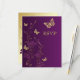 Este bonito cartão de casamento floral roxo e verde tem borboletas de ouro FAUX (simuladas) e flores roxas que correspondem ao convite de casamento mostrado abaixo. ****POR FAVOR, OBSERVE QUE as flores e borboletas NÃO são criadas nem gravadas de forma alguma. Se você precisar de outros itens correspondentes neste design, envie seu pedido por e-mail para niteowlstudio@gmail.com.