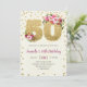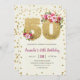 Placa de Convite Floral e Dourada para Largura Rosa para a 50ª Festa de aniversário com Números de Largura