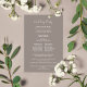 Uma simples folha de papel do programa de cerimônia de casamento. Com um design floral, floral, boho-chic minimalista, simples, elegante, botânico, cor-de-rosa-pincel, estilo de serviço