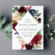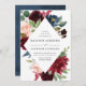 O convite para casamento floral elegante mostra seus nomes e detalhes de casamento enquadrados por flores rosas, cor-de-rosa-pincel e marinho azul-aquarela elogiadas por uma folhagem verde-luxuosa. O verso do convite apresenta um fundo de cor azul-d-água opcional marinho.