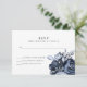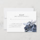 Estes cartões RSVP de casamento modernos e elegantes apresentam lindas flores aquáticas em preto, branco e azul. A parte de trás da carta é preta. Usamos arte de LABFcreations.