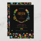 Concursos de aniversário de Fiesta Floral. Este tradicional convite de fiesta é criado com flores multicoloridas e folhas sobre fundo preto que podem ser mudadas para qualquer cor que você preferir usando a ferramenta de edição Zazzle! Outros materiais de festa e decorações estão disponíveis em Metro-Event.com e em Metro-Events no Zazzle.