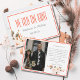 Fundo branco clássico com uma estrutura laranja moderna, colorida e vibrante para combinar o belo buquê de flores brancas, rosas claro e laranja queimadas. A tipografia combina a letra sans serif moderna com uma escrita tradicional e romântica. Esta design é simples, mas elegante e combina as cores e a tipografia modernas com os tradicionais, românticos e eternos de aquarelas florais e guião. O dorso apresenta um arranjo floral mais pequeno, com duas flores e os correspondentes enchedores botânicos representando os dois indivíduos que trazem seus próprios detalhes e as combinam em um. As iniciais dos casais são detalhes simples, mas românticos. Este convite é parte da suíte de casamento "Forever Yours", espero que você o ame.