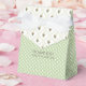 Bonito caixa de presentes verde e branco para favoritos de casamento com um pequeno padrão de bolinhas e um olhar de latência no flape com flores coloridas. Personalize o texto marrom, na frente, para ler o que você quer.