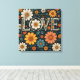 Celebre o amor com esta bela e intrincada trabalho de arte de tipografia floral. A palavra "LOVE" é elegantemente integrada num fundo botânico vibrante, cheio de margaridas coloridas e folhas estilizadas. Esta design é perfeita para adicionar um toque de encanto romântico e natural à sua decoração doméstica ou como um presente sincero.