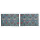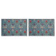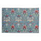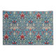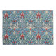Intricate floral pattern with red, cream, and green leaves on a blue background. Symmetrical design evokes a classic, elegant, and ornate feel.