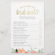 Um jogo de chá de panela personalizado para ver qual convidado conhece melhor a noiva! Edite as perguntas para tornar isso específico para a noiva. Este design apresenta uma elegante letra de escrita, folha de ouro falsa e um arranjo floral cor-de-rosa no fundo da página. Cartões se revertem a um belo padrão das mesmas flores de aquarela. Visualize a coleção vinculada nesta página para correspondência de papelaria de chá de panela ou visite nossa loja para ver mais jogos de chá de panela.