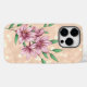 Capa de telefone moderna e feminina com buquê de flores em cor rosa para cada dia de ocasiões. O ouro é simulado.