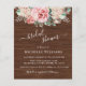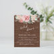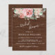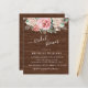 Flores Rosa Blush de Orçamento com Convites de chá de panela de Casamento de Fundo de Madeira - apresenta um roteiro branco manuscrito e elegante com rosas e flores rosadas e rosas rosadas rusticadas e escamosas. Observe que os envelopes NÃO estão incluídos neste design. Se precisar de envelopes, verifique nossa coleção ou adquira-os separadamente do mercado.