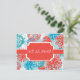 Moderno, mas elegante, salve o cartão de data. Olho pegando design. Padrão floral na combinação de cor coral e turquesa. Olhar contemporâneo. A data está na frente e os detalhes no verso. Adicione a sua própria redação.