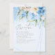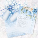 Uma fonte manuscrita, com assinatura combinada com quadros geométricos, fundos cintilantes e flores esmagadoras são usados nesta coleção Doce Dezesseis para definir um tom quente e íntimo para seu evento. O convite mostrado aqui, com seu arranjo floral de canto em azul-celeste e creme de tendências com brilhos coordenadores, fornece os detalhes de seu evento, ao mesmo tempo que oferece uma espiada da sua estética e estilo decorativos. Procure ID912 para ver todos os produtos e opções de cor neste conjunto.