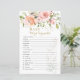Este design apresenta uma ilustração de cor d'água do rosa de rosca de damasco e da folhagem verde - Jogo do Word Scramble de Chá de fraldas. Na parte superior da placa - confete de efeito ouro. Desembaralhe as palavras do bebê. Chave De Resposta: Pó De Bebê, Garrafa, Cobertura, Fraldas, Lullaba, Assento De Carro, Termômetro, Shampoo, Pacificador, Battle, Bassinet, Alta Cadeira, Monitor De Bebê, Rolha, Enfermeiro, Cadeira De Rocha
