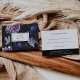 O certificado de presente floral chico exibe seu texto personalizado (mostrado com "um presente para você") em um padrão de rosas roxos e lavandas índios profundos e azuis em um fundo escuro e dramático. Adicione o texto desejado do certificado-presente e as informações de contato comercial no verso com o formulário preto. Uma escolha moderna e elegante para butiques, salões, maquiadores, cabeleireiros ou qualquer negócio. Disponível como download digital ou impresso profissionalmente.