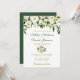 Convite para Casamento Verde Botânico Floral e Branco - Script Verde e Dourado - Vertical